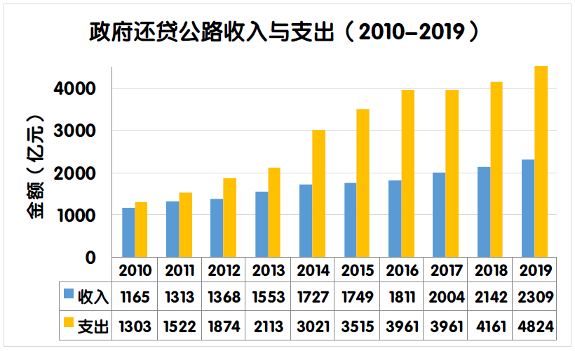 2019年度全國收費(fèi)公路通行費(fèi)收支缺口比上年增加780.4億元,增長19.2%。主要原因是2019年度通行費(fèi)支出總額較上年增加。一是2019年度部分收費(fèi)公路債務(wù)到期,償還債務(wù)本金支出較上年凈增525.9億元;二是隨著債務(wù)規(guī)模的擴(kuò)大,償還利息支出凈增169.0億元;三是新建ETC門架系統(tǒng)、改造ETC車道、安裝入口不停車稱重檢測系統(tǒng)、省界收費(fèi)站正線設(shè)施改造工程等支出。