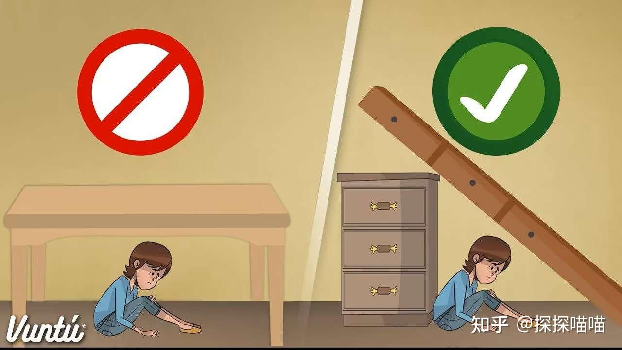 - 次選結(jié)實(shí)的桌子、床旁(注意:不是鉆下面,而是緊貼側(cè)面,形成“生存三角”)。