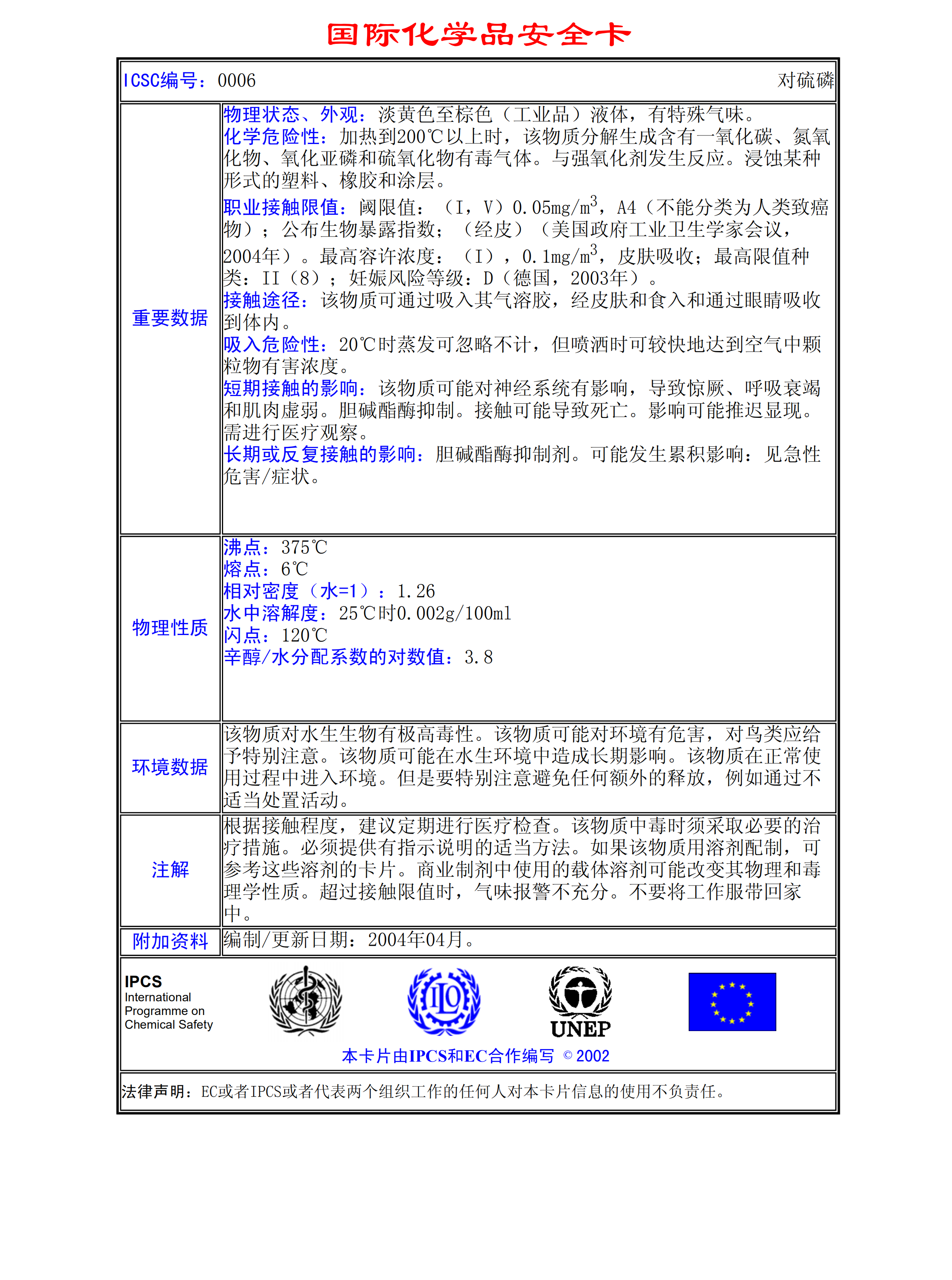對硫磷MSDS