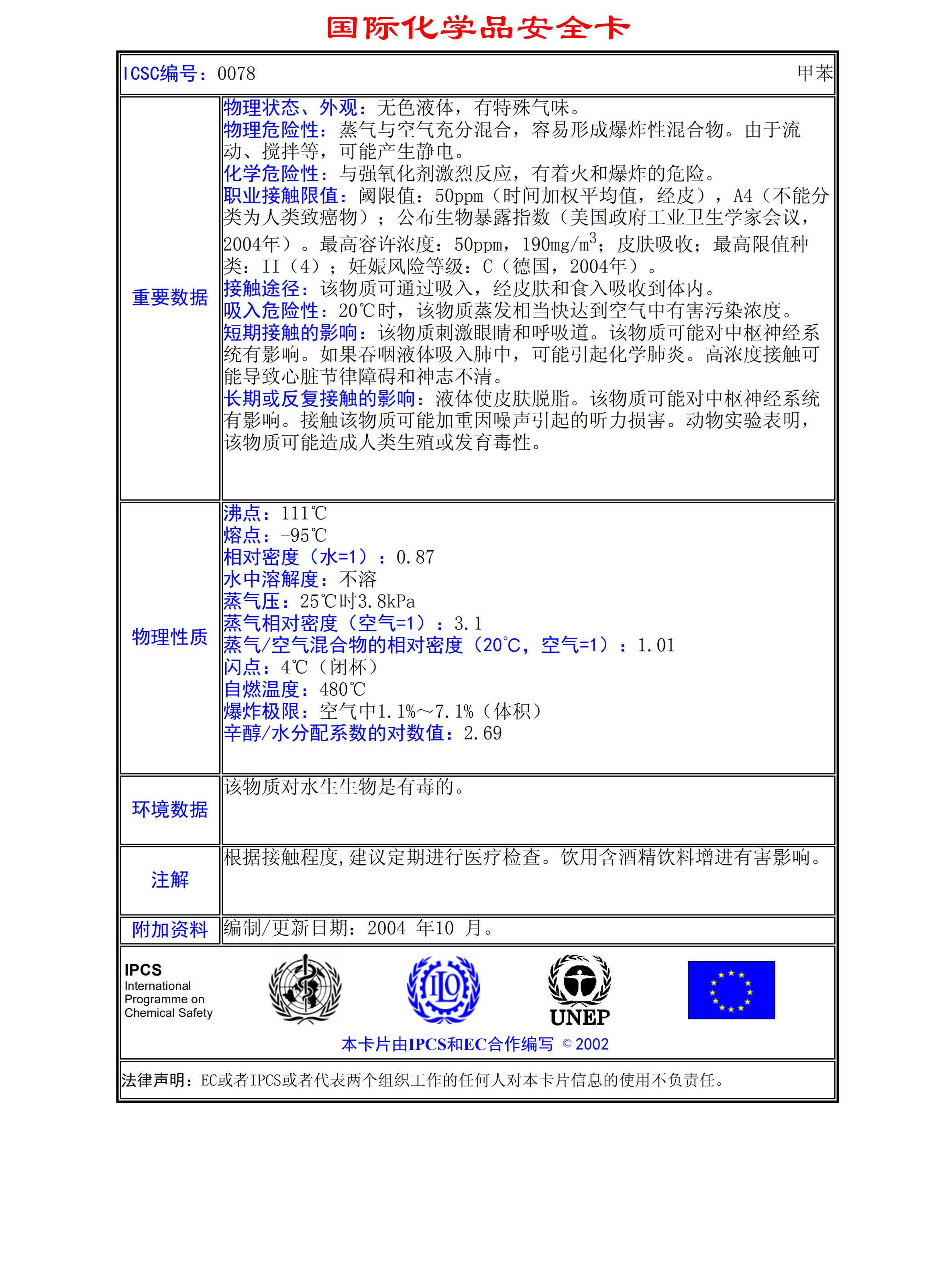 甲苯MSDS