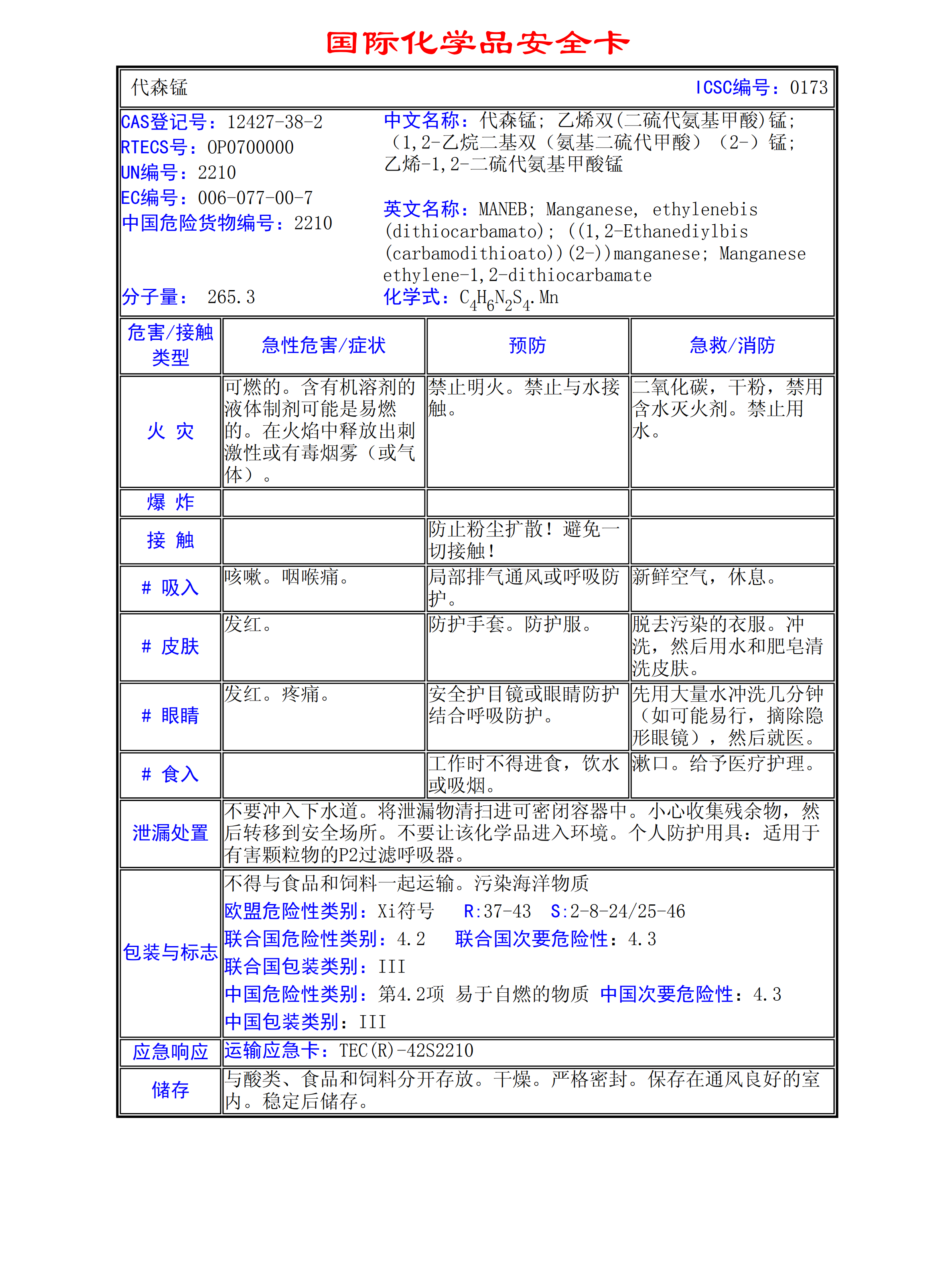 代森錳MSDS
