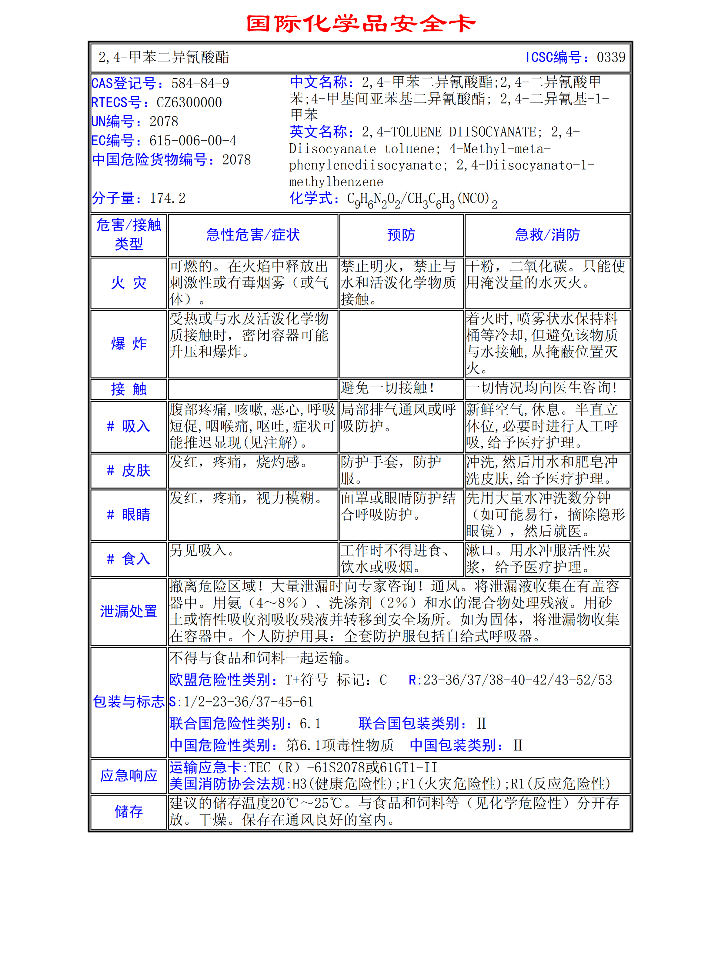 2,4-甲苯二異氰酸酯MSDS