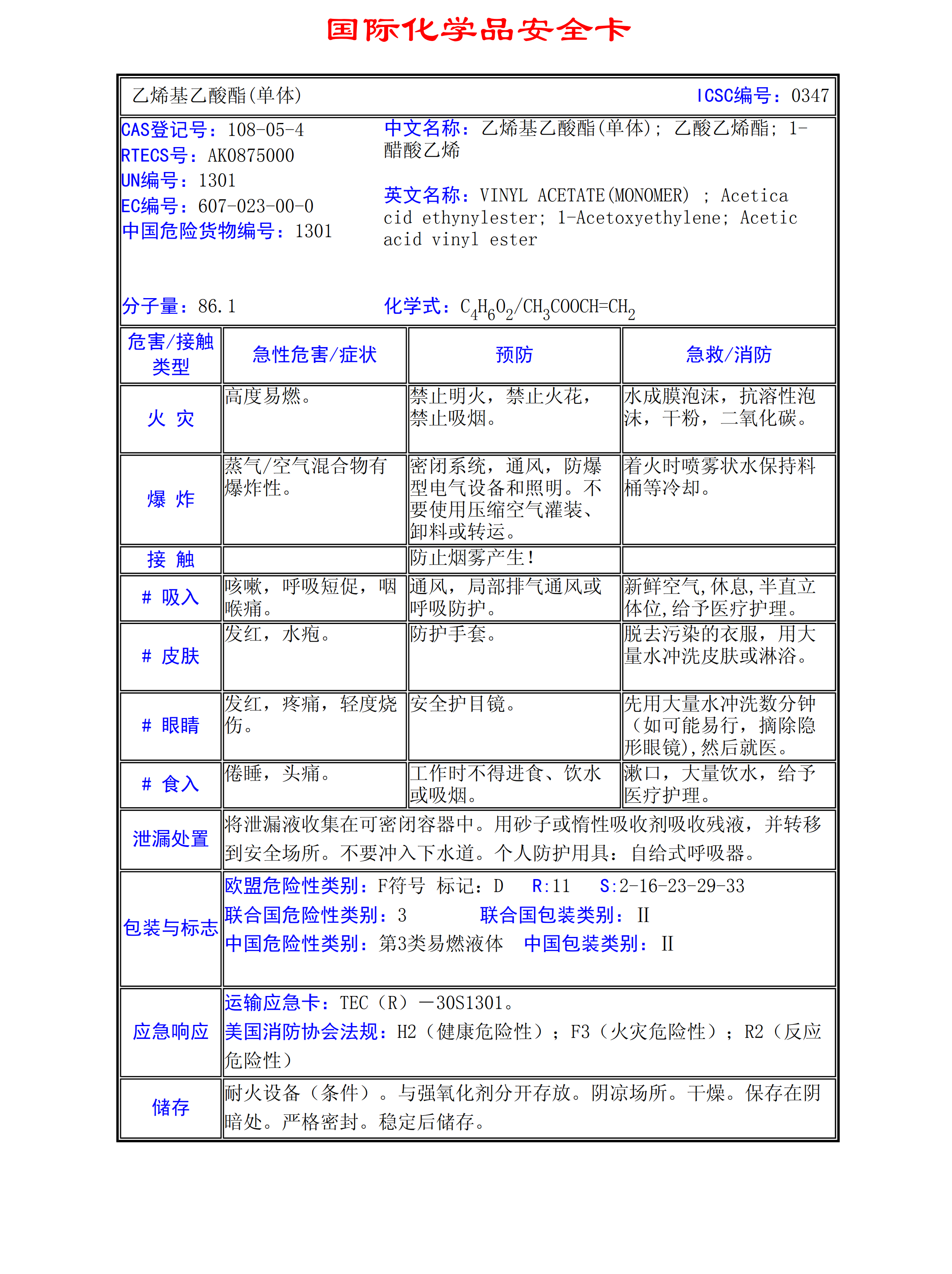 乙烯基乙酸酯(單體)MSDS