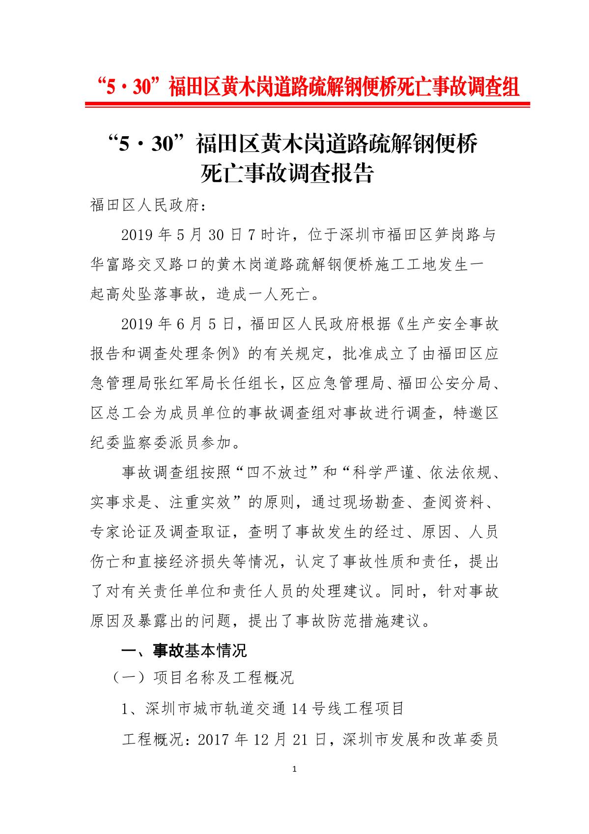 “5.30”福田區(qū)黃木崗道路疏解鋼便橋死亡事故調(diào)查報(bào)告