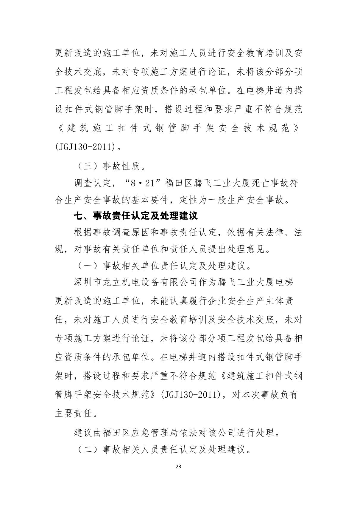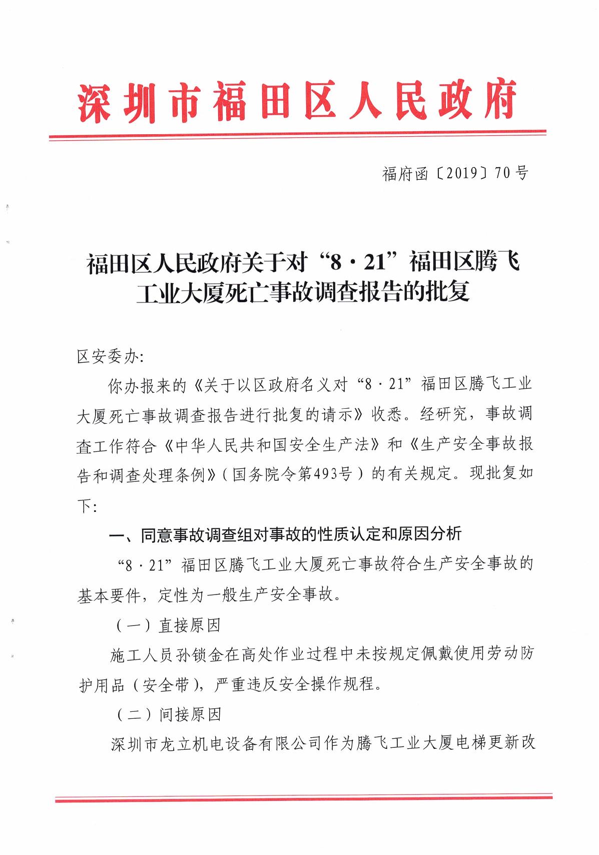 “8.21”福田區(qū)騰飛工業(yè)大廈死亡事故調(diào)查報告
